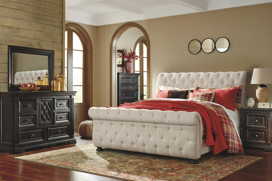 Flynnter - Medium Brown - King Sleigh Bed with 2 Storage Drawers